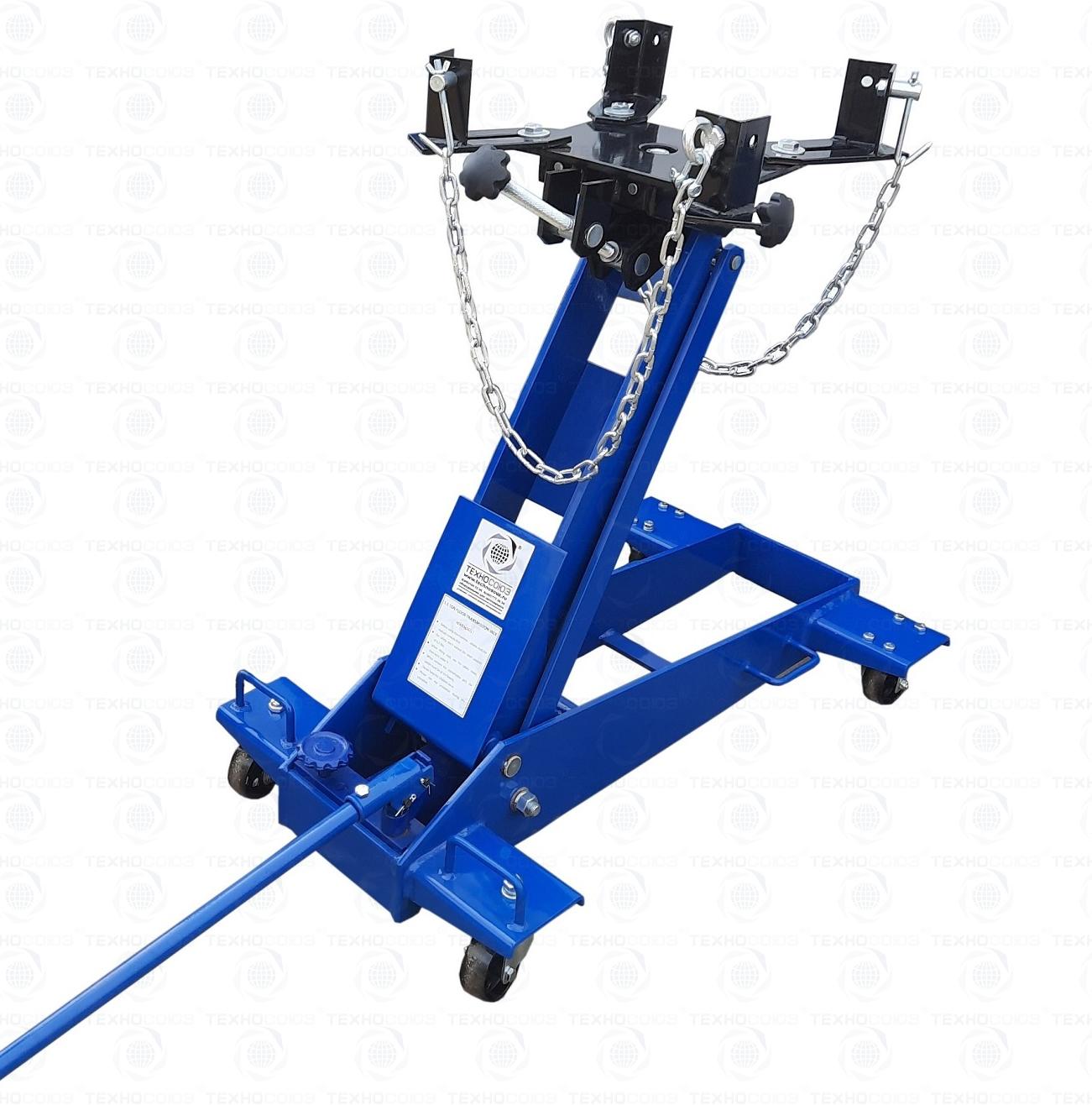 Стойка трансмиссионная (домкрат трансмиссионный) для снятия/установки ОСОБО ТЯЖЕЛЫХ АГРЕГАТОВ (КПП, мостов и т.п.) г/п 1,5т. Устойчивый и маневренный – два колеса поворотные. Подъем 230-880мм. Оборудован страховочной цепью, для фиксации агрегата. Приемная площадка регулируется с фиксацией в трех плоскостях: продольно, по наклону, по оси вращения.