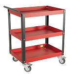 Тележка инструментальная открытая, трехполочная. Идеально подходит для перемещения и хранения небольших агрегатов (стартеры, генераторы, и т.д.) в слесарном и кузовном цеху. Размеры, мм: 855x750x500. Вес, кг: 23
