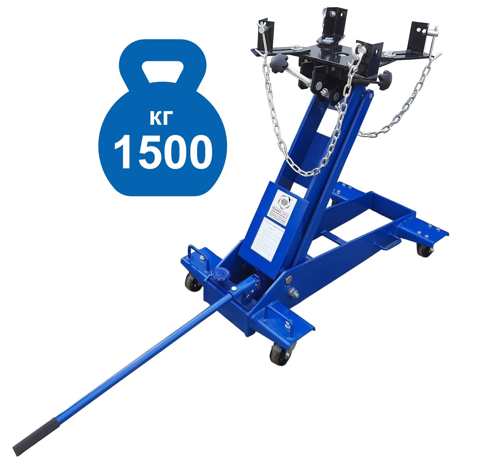 Домкрат трансмиссионный для снятия/установки ОСОБО ТЯЖЕЛЫХ АГРЕГАТОВ (КПП, мостов и т.п.) г/п 1 т. Подъем 230-760 мм. Устойчивый и маневренный – два колеса поворотные. Оборудован страховочной цепью, для фиксации агрегата. Приемная площадка регулируется с фиксацией в трех плоскостях: продольно, по наклону, по оси вращения.