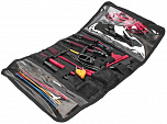 Набор диэлектрический 24 предмета. В комплекте: трещотка 1/2"; изолированный удлинитель 5"; изолированные головки 1/2": 10, 12, 13, 14, 17, 19, 22, 24 мм; ключ с Т-образной рукояткой с изоляцией 1/2", нож электромонтажный; отвертки с изоляцией: РН1х4", РН2х4", шлицевая 5.5х5", 4.0х4"; рожковый ключ с изоляцией: 7, 8, 10, 12, 14 мм; клещи с изоляцией: 8" универсальные клещи, 6", бокорезы.