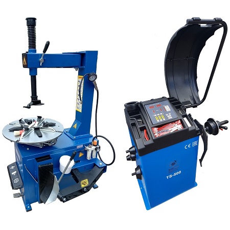 Комплект: шиномонтажный станок TS-21 для дисков: внешний 11÷20” + пистолет с манометром для подкачки шин + монтажка + пластиковые накладки на зажимные кулачки + регулятор давления с влагоотделителем и манометром. + TS-500 балансировочный станок с автозапуском, для колес легковых автомобилей и легких грузовиков, диаметр диска с резиной до 760 мм. размеры диска: ширина 3"–9” (76-228 мм), диаметр диска 10"–21” (254-533 мм). + кожух защитный + клещи + кронциркуль + быстрозажимная гайка + набор конусов + подкатной домкрат г/п 3,0т. 130-465мм. + ударный пневмогайковерт 1/2" крутящий момент 745Нм + шланг кислородный 9мм 20Атм. 10м
