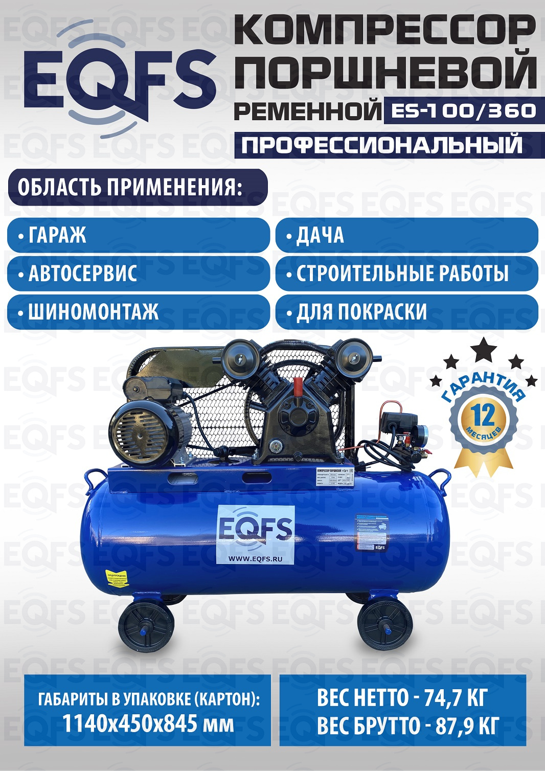 Компрессор воздушный, передвижной, поршневой, масляный, двухцилиндровый. Быстро достигает нужного давления. Двухпоршневая головка двигателя уменьшает износ деталей и увеличивает срок службы. Ремённый привод — предохранят мотор от поломки. Идеальное решение для небольшой мастерской, шиномонтажа, гаража или дачи. Давление 8 Атм. Производительность 360 л/мин. Мощность 2.2 кВт. Напряжение 220В. Ёмкость ресивера 100 л. Гарантия 12 месяцев.