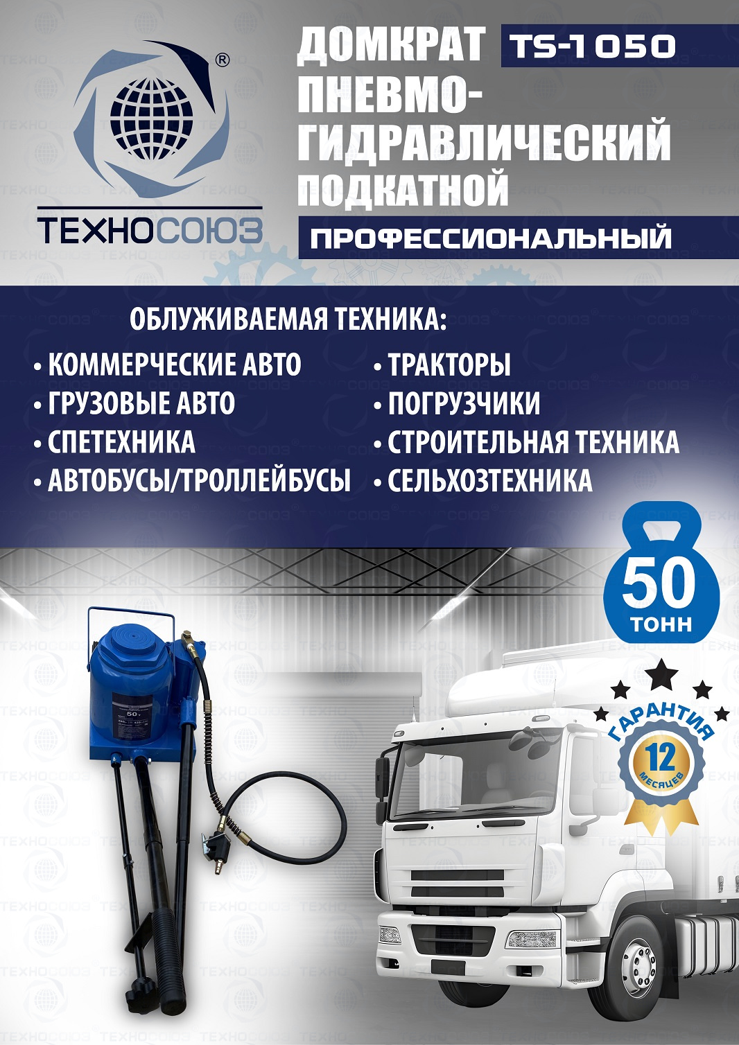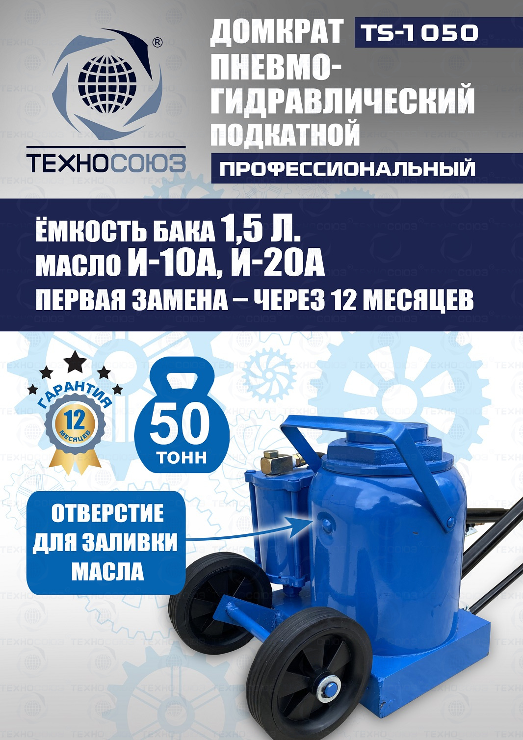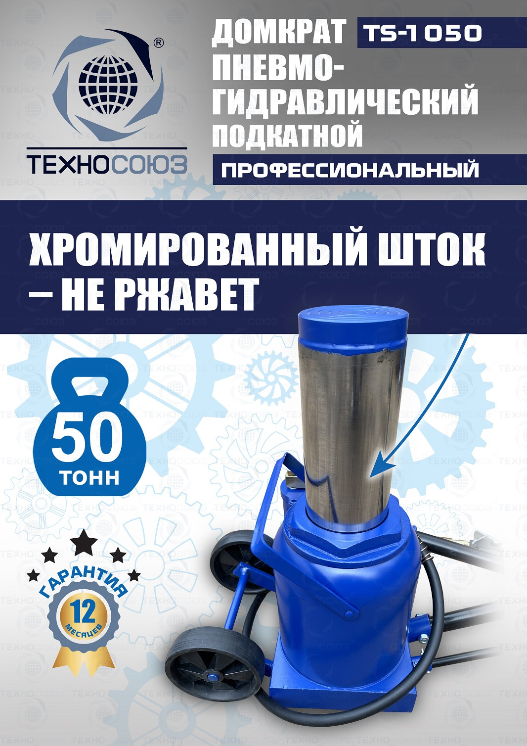Технические особенности TS-1050 грузовой подкатной пневмогидравлический домкрат 50 тонн: